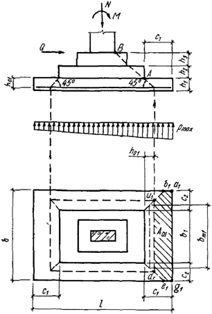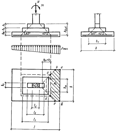 фундамента от расчетных нагрузок, действующих соответственно в направлении
