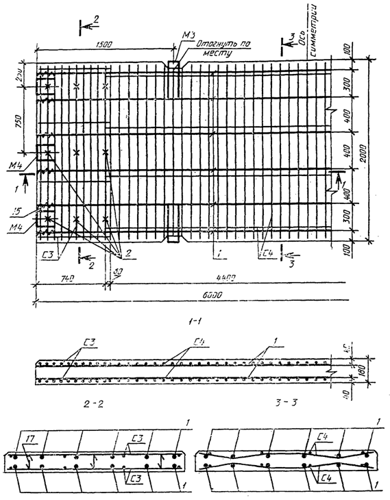 арматура; 2 - крепление сеток С3