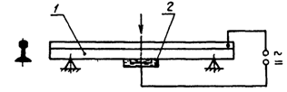 пробы, расположенной на двух опорах головкой вверх, путем приложения