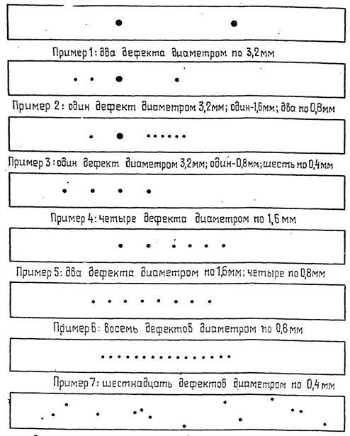 размер дефектов, их размещение относительно друг друга, а также сумма диаметров