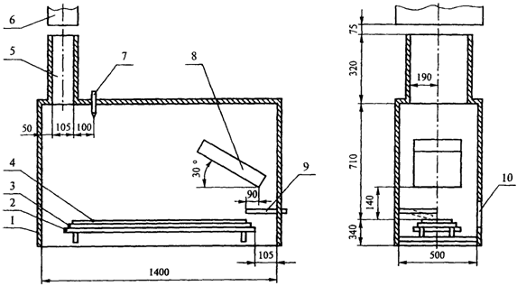 - Реакция на огонь - Распространение пламени по горизонтальной поверхности