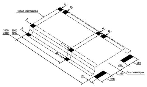 передающие нагрузки в пределах расстояния 3150 - 3500 мм от торца контейнера,